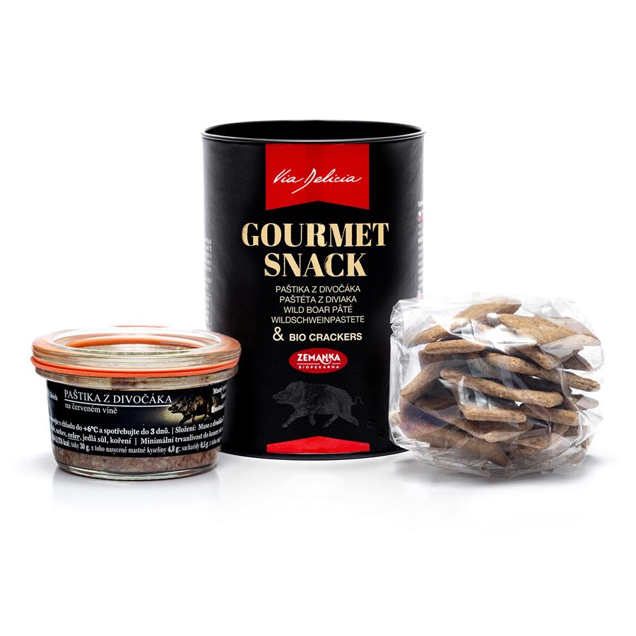 Malý, ale nápaditý gurmánský zážitek, který spojuje to nejlepší z české delikatesní výroby. V elegantním černém tubusu najdete paštiku z divočáka na červeném víně od firmy Via Delicia ve skleničce Weck a k tomu BIO krekry od nás – upečené tak, aby skvěle nahradily pečivo a daly se rovnou použít k nabírání paštiky. Stačí otevřít, nabrat a vychutnat – žádné další servírování není potřeba.